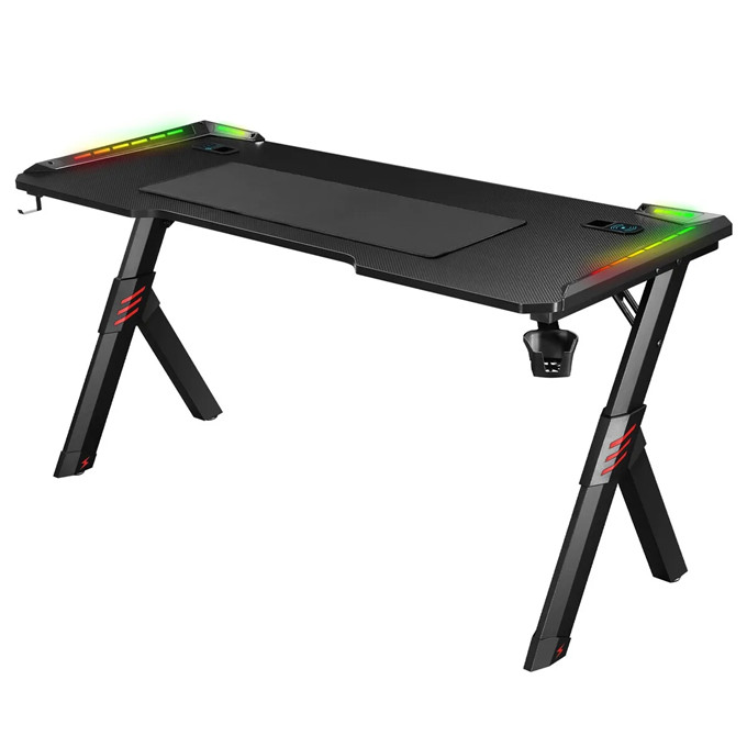 120CM Gaming Desk Computer Office Racer Table RGB LED Carbon Fiber USB Wireless Charger